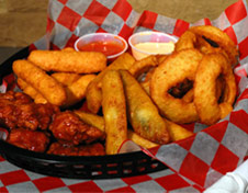 Mozzarella Sticks, & our thick sliced, deep fried Onion Rings. Served with